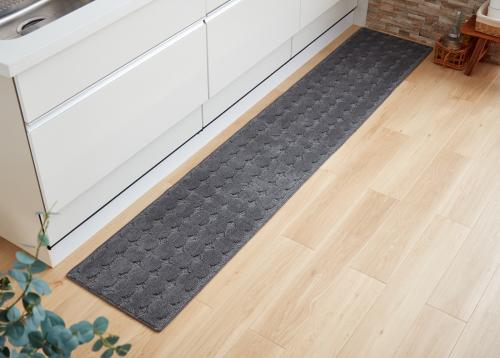 バスマット(1柄3アイテム)、キッチンマット(1柄3サイズ9アイテム)、トイレマット(1柄3アイテム)を展開する。