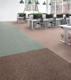 PX-6000は、無地調に繊細な織模様を施した、汎用性の高いスタンダードなデザインのシリーズ(6配色)。表面材は、原着ポリプロピレン100%を採用し、裏材は「ECOS」リサイクルバッキングを採用、再生材比率69%(製品全体重量比)、CO2削減貢献率39%(バージン原材料商品との比較)を実現している。価格は6000円/平米。