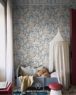 新作コレクションは、「ADORN(アドーン)」(11デザイン35点)、「ANNO II(アンノ II)」(17デザイン44点)、「FAIRYLAND(フェアリーランド)」(5デザイン16点)の3つ。「ADORN」は緑の葉と花々、そして小さな美しい物語や幾何学的な要素で構成された、柔らかで心地よいコレクション。「ANNO II」では1750年代のスウェーデン最古のプリント壁紙アーカイブから生まれた民芸のステンシル模様、ユーゲントシュティール期の花柄などのデザインを展開、「FAIRYLAND」は海、宇宙、森、おとぎ話の魅惑的な生き物たちが描かれた物語の舞台のような空間を演出するコレクションとなっている。