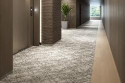 カーペットが汚れる主な原因は、外から持ち込まれる土砂など。パイル内に侵入し絡み付いた汚れは、掃除機掛けや洗浄をしてもきれいにすることは困難となる。「Scape Form」は、製造時にリンレイの「カーペットパイルコーティングAg+」を施工処理することで、汚れを付きにくくするとともに、パイルに絡み付いた土砂なども日常の掃除機掛けで簡単に取り除くことができるようになる。そのため、オフィスのエレベーターホールや共用廊下、ロビーラウンジなど、人の往来の多い空間でも美観を保つことができる。
