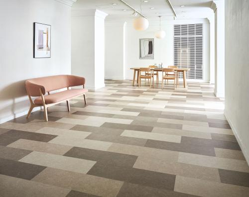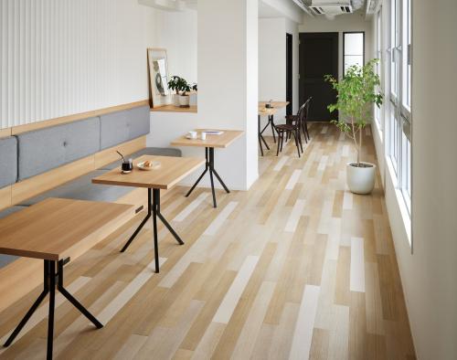 ビニル床シートや置敷きビニル床タイルの市場ではノーワックスメンテナンスが定着しつつある。そこで同社では、複層ビニル床タイルの製品において全品ノーワックス化を実行、「マティルNW」「ウッドラインNW」にリニューアルする。