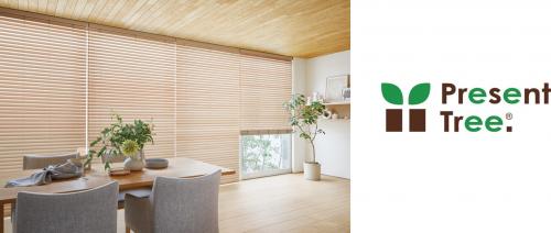 「Present Tree.」は、認定NPO法人環境リレーションズ研究所が2005年1月にスタートさせた森林再生プロジェクト。被災林や造林未済地などに樹を植えて、10年かけて天然林に近い森に再生していく。これまで、国内60ヶ所・海外2ヶ所に432,235本(2025年12月15日時点)を植樹している。このプロジェクトに対して、木製ブラインド「フォレティア」シリーズの売上の一部を寄付する。