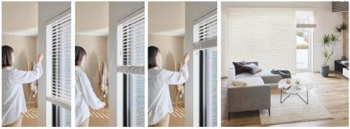 「ベネウッド」は、ループ状のコードを使用しない新しい操作方法を採用し、引っ掛かりや絡まりのリスクを軽減したウッドブラインド。操作はグリップを片手で引くだけで、引いたコードは自動で戻るため、コードが垂れ下がることもなく、子どもがいても安心して使用できる。ブラインドのコードによる窒息事故に対する注意喚起がされるなか、その事故防止とともに操作性を高めた機構が、審査員の評価につながった。
